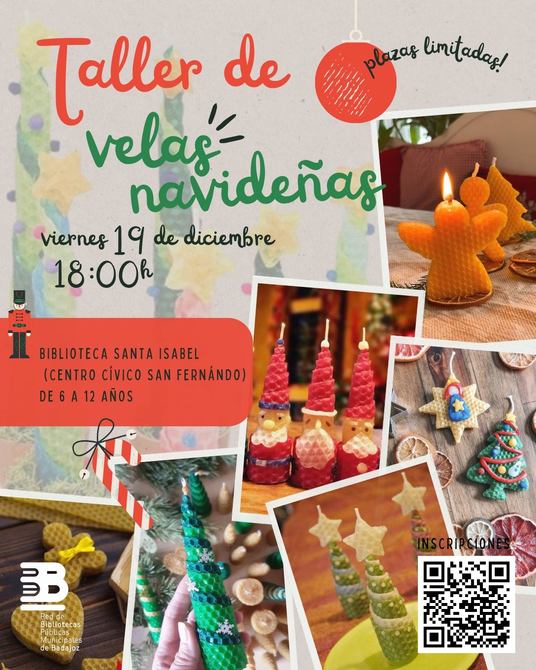 Este 19 de diciembre a las 18:00 h te esperamos para disfrutar de un taller navideño muy especial: Creación de velas con cera de panal…