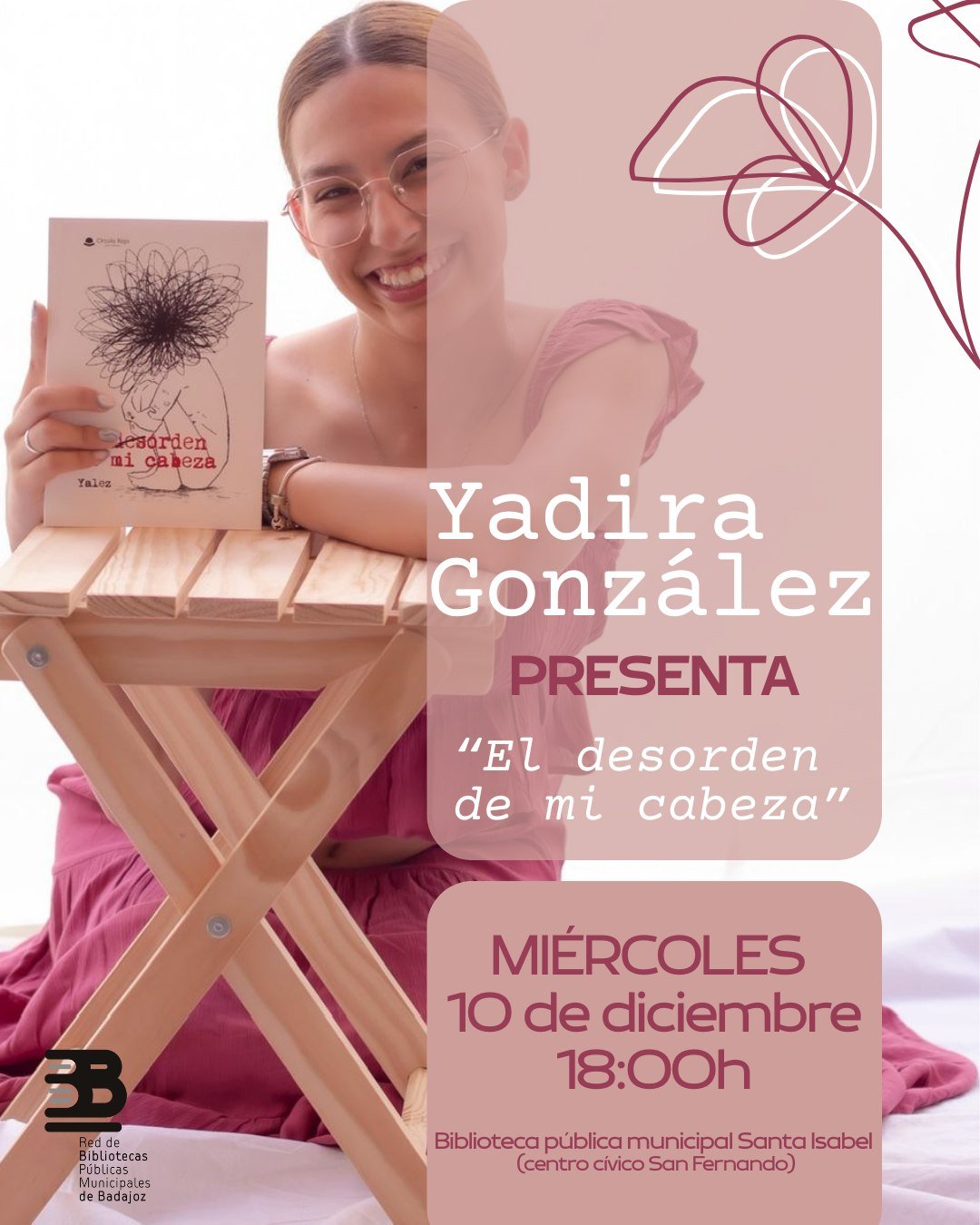 El miércoles 10 de diciembre a las 18:00 h, recibiremos a Yadira González, una joven autora que nos presentará su libro “El desorden de mi cabeza”.
